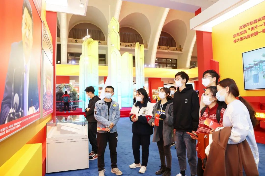此次展览设序厅、中央综合展区、地方展区、展望展区、室外展区和互动展区6个展区,面积超过3万平方米,运用图片、实物、模型等6000多项展览要素,角度丰富、内涵饱满。每一个展区都是一段浓缩的历史,在一个个实物模型、一幅幅图片图表、一段段精彩视频中,北航师生感悟着新时代党和国家事业取得的历史性成就、发生的历史性变革。