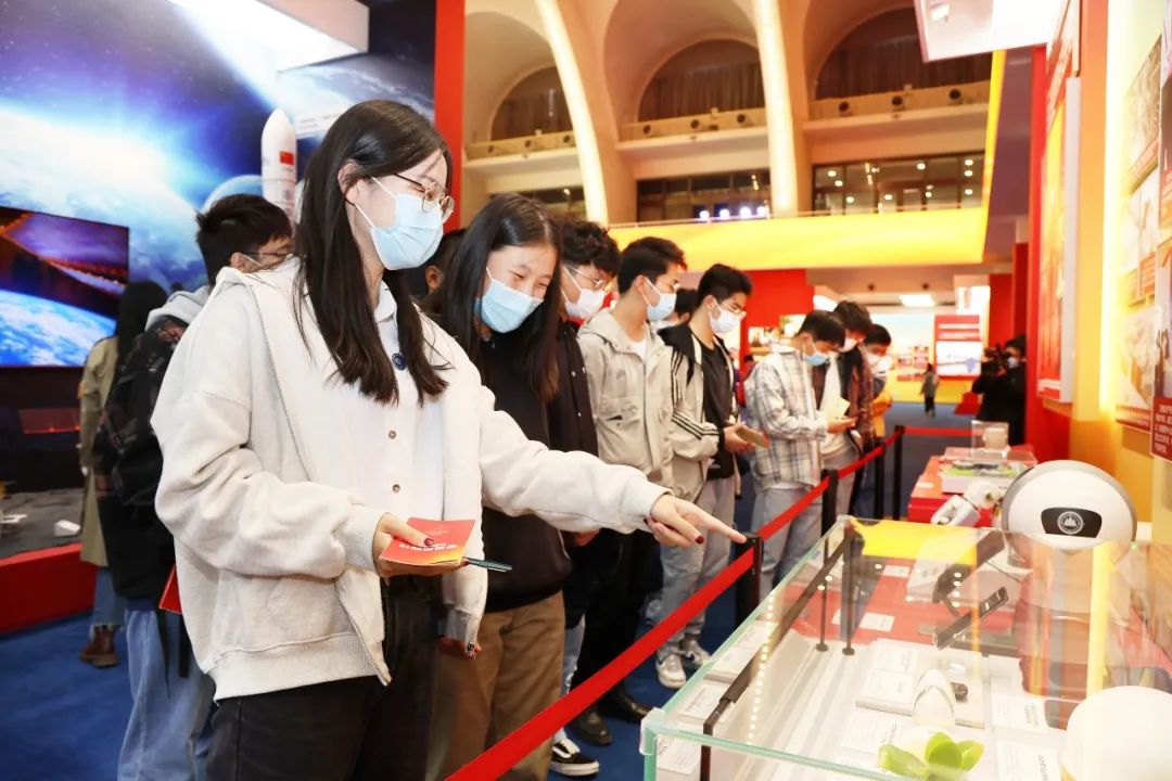 驻足在这一展区,同学们还在视频画面中发现了北航“月宫一号”的身影。“月宫一号”是北航校园里的空间基地生命保障人工闭合生态系统地基综合实验装置,曾开展世界上时间最长、闭合度最高的生物再生生命保障系统实验,刷新了人类密闭生存的世界纪录。看着视频中“月宫一号”志愿者们忙碌的身影,人文社会科学学院2019级本科生丁林枫说:“新时代是新的一代追梦人的时代,广大青年要坚决响应党的号召,怀揣爱国之情,秉承老一辈奋斗和实干精神,去拼搏奋斗,去开拓崭新未来,方能不负时代,不负韶华!”