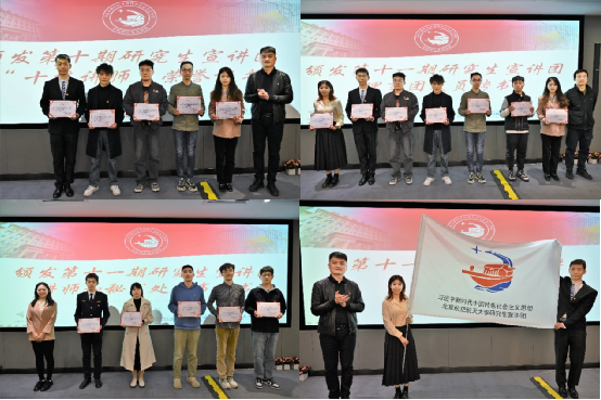 会议宣读了第十期宣讲团“十佳讲师”名单,学生工作部副部长梁帮龙为“十佳讲师”颁发荣誉证书。计算机学院党委副书记冯维成为第十一期宣讲团理事团成员颁发聘书,指导老师于秋漫为讲师和秘书代表颁发聘书。随后,梁帮龙老师宣布第十一期研究生宣讲团正式启动,并向团长傅毓、副团长李港授旗。