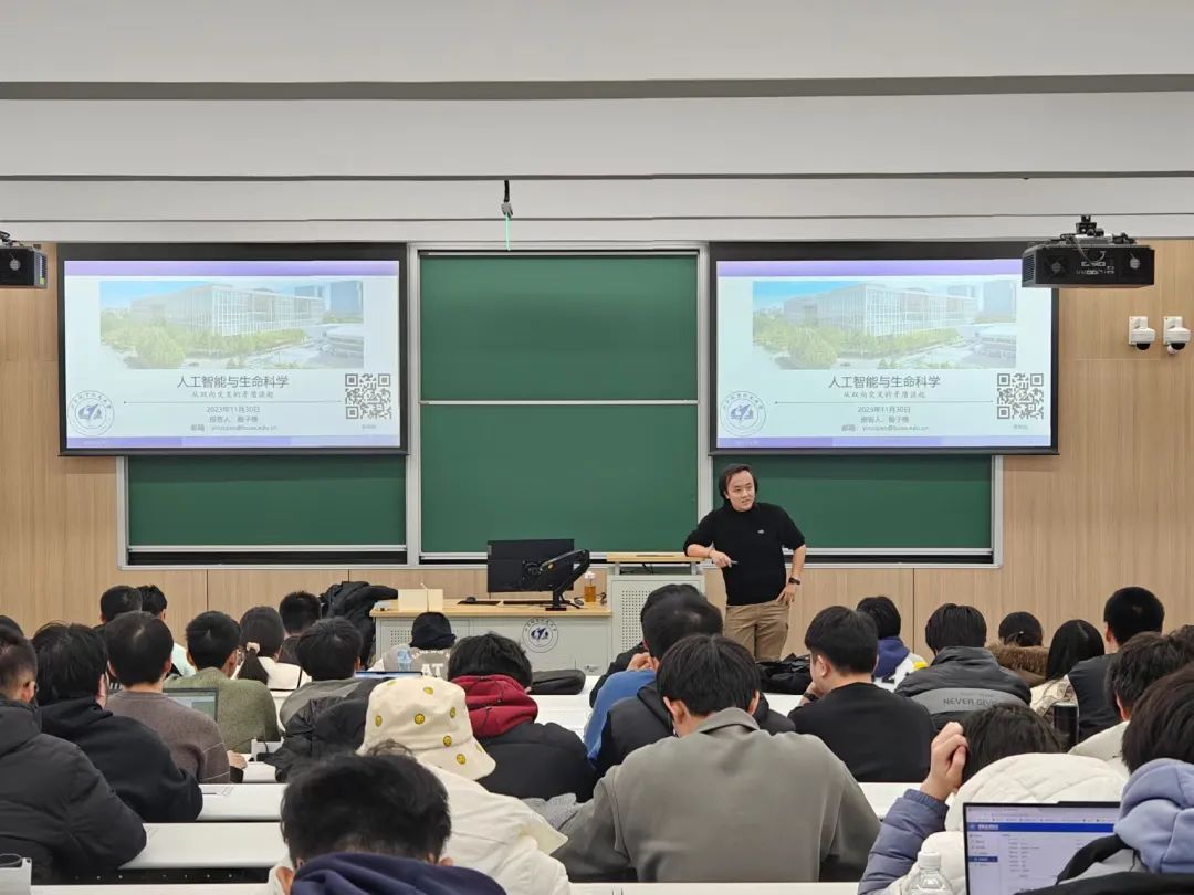 11月30日,人工智能研究院举办“IAI名师讲堂”系列讲座第四讲,由殷子樵老师讲授《人工智能与生命科学——从双向交叉的矛盾谈起》。本次讲座面向全校开设博雅,参与人数达200人。讲座围绕人工智能在生命科学领域的困境和生命科学在人工智能领域的困境,点明了现有人工智能算法的缺陷,并基于现有的难题提出了相应的解决方案。