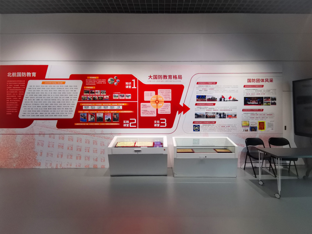展览同步展出毛泽东的外孙女、北航1996届校友孔东梅女士出版的书籍,和北航近年来的国防教育成果。