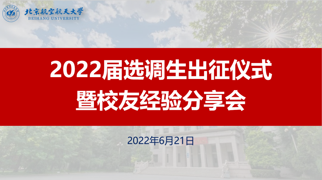 6月21日,北航举办2022届选调生出征仪式暨校友经验分享会。副校长黄海军出席活动,2022届(拟)录取选调生及低年级意向选调同学近200人参加活动。会议由招生就业处及职业发展协会提供支持。会议以“不忘初心、牢记使命、淬励奋发、激扬青春”为主题,分为“思政讲座”、“校友分享”、“母校老师寄语”、“抽奖互动”四个环节。