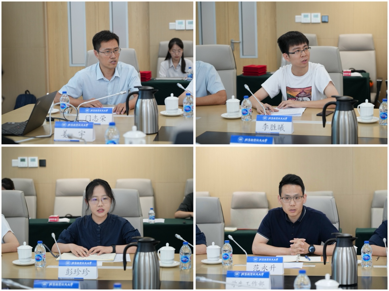 会上,学生工作部李广玉汇报了教师兼职辅导员工作情况。电子信息工程学院教师门志荣、李胜曦、彭珍珍,能源与动力工程学院教师范永升,航空科学与工程学院教师安朝、宋威,人文社会科学学院(公共管理学院)教师王春地结合自身成长经历,围绕更好地发挥专任教师在学术引领、科研指导等方面的优势,有效开展思想理论教育和价值引领,分享了对于教师兼职辅导员工作的理解和工作规划。