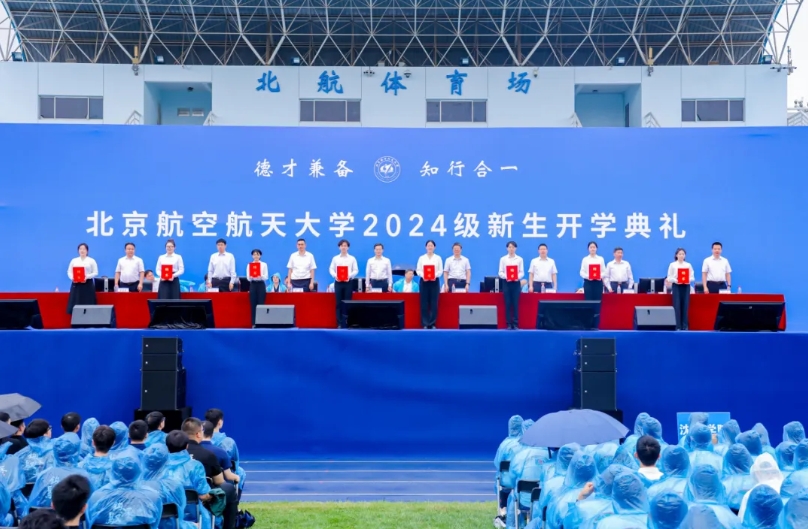 全体师生齐声合唱校歌《仰望星空》,开学典礼在悠扬的旋律声中结束。2024级新生崭新的帷幕已经拉开,无比精彩的大学生活正等待着新北航人来描绘,全体新北航人将牢记“德才兼备、知行合一”的北航校训,传承弘扬以“空天报国”为内核的北航精神,将青春梦想融入祖国山河,奋力书写为中国式现代化挺膺担当的青春篇章!
