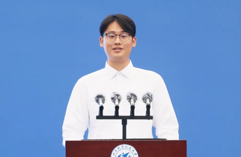 国家卓越工程师学院硕士研究生黄浩宇同学代表全体研究生新生发言。黄浩宇回顾了自己本科期间在北航参与研究项目的经历,并表示作为新时代青年,将在求知与实践中坚定人生航向,锤炼“真本领”、增长“真才干”,以开放的心态学习新知,以坚韧的精神克服险阻,以创新的思维开拓视域,再攀科技新高峰。