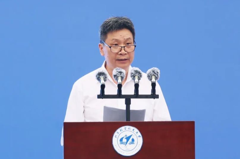 王云鹏代表学校全体师生对12536名新北航人表示热烈的欢迎和衷心的祝贺。他深刻阐述了“空天报国”这一学校最为鲜明的精神底蕴,深情回顾了北航七十二年来创新图强、初心未改,矢志不渝为国铸器、育栋梁的办学历程。
