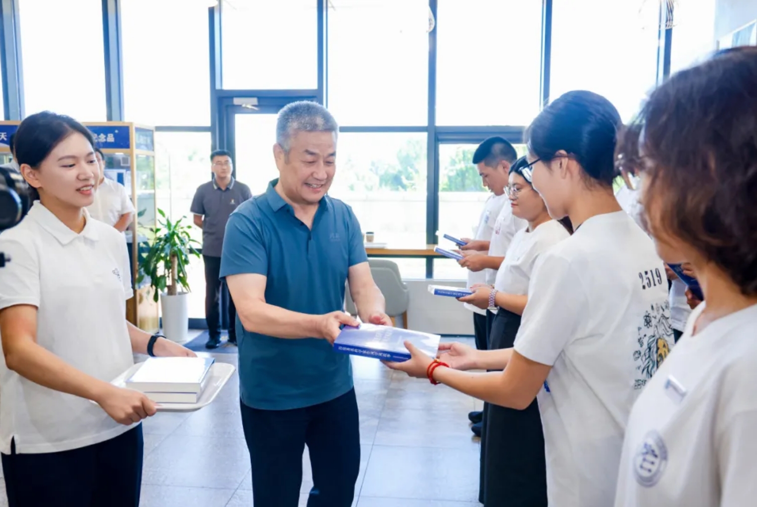 座谈会后,赵长禄、王云鹏为新生代表们赠送书籍《百位著名科学家作风学风故事》,并与同学们合影留念。