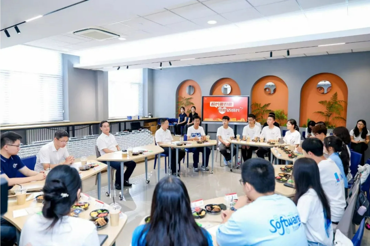 赵长禄、王云鹏对新生代表进入北航、成为新北航人表示热烈祝贺与欢迎。座谈会气氛轻松热烈,同学们畅所欲言,结合自身成长经历,分享了选择北航的初心、入学以来的感受以及对未来学习生活的憧憬与规划。